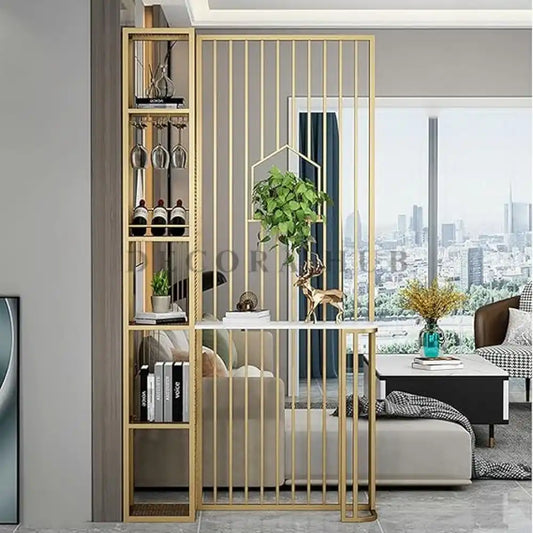 Gold Stainless Steel PVD Partition with Decorative Shelves