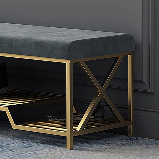 Bring timeless elegance to your interiors with this modern velvet bench, crafted with a durable stainless steel frame finished in glossy gold for a luxurious appeal. The plush, tufted velvet seat in a sophisticated gray color offers superior comfort while complementing both modern and contemporary décor styles. With a practical size of 42 x 14 x 18 inches, this bench is ideal for bedrooms, living rooms, entryways, and vanity spaces. Its premium build and stylish design make it a perfect addition to luxury home furniture, modern seating solutions, and elegant interior décor, enhancing both functionality and visual charm.