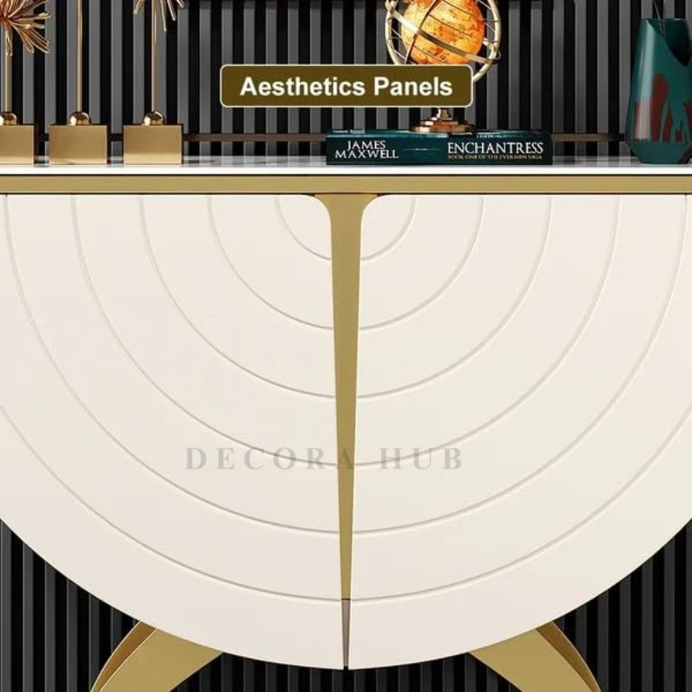 DecoraHub Half-Moon Gold Marble Console Table with Storage