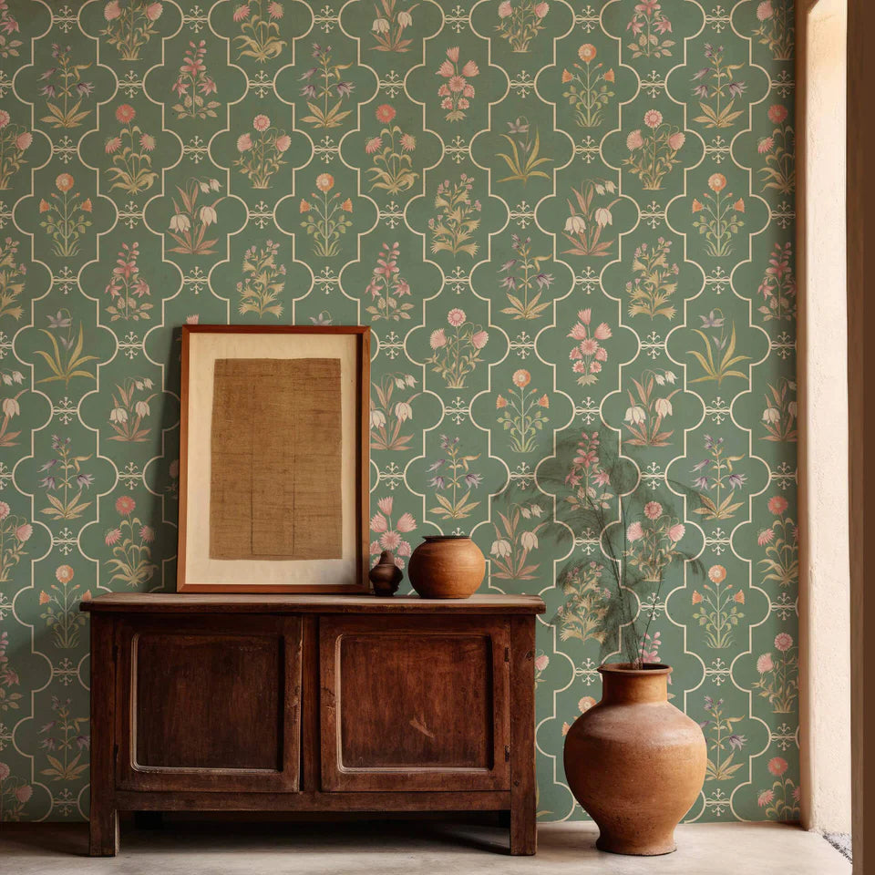 Elevate your space with the timeless beauty of this Mughal-inspired wallpaper. The rich, saturated colors and ornate florals create an elegant, sophisticated ambiance that will make any room feel truly regal. Whether you're looking to create a focal point or tie together your décor, this wallpaper is a surefire way to add a touch of opulence.