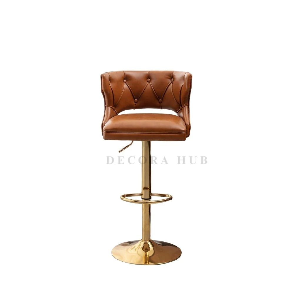 The seat is upholstered in ultra-soft, premium velvet, featuring a meticulous tufted design that adds a layer of designer flair. Padded with high-density foam, the ergonomic high-back ensures long-lasting comfort for late-night conversations or morning coffee. Whether you are furnishing a sleek kitchen island or a professional bar area, the heavy-duty gold pedestal and integrated footrest provide unmatched stability and style. Elevate your interior decor with a seating solution that defines luxury and durability.
