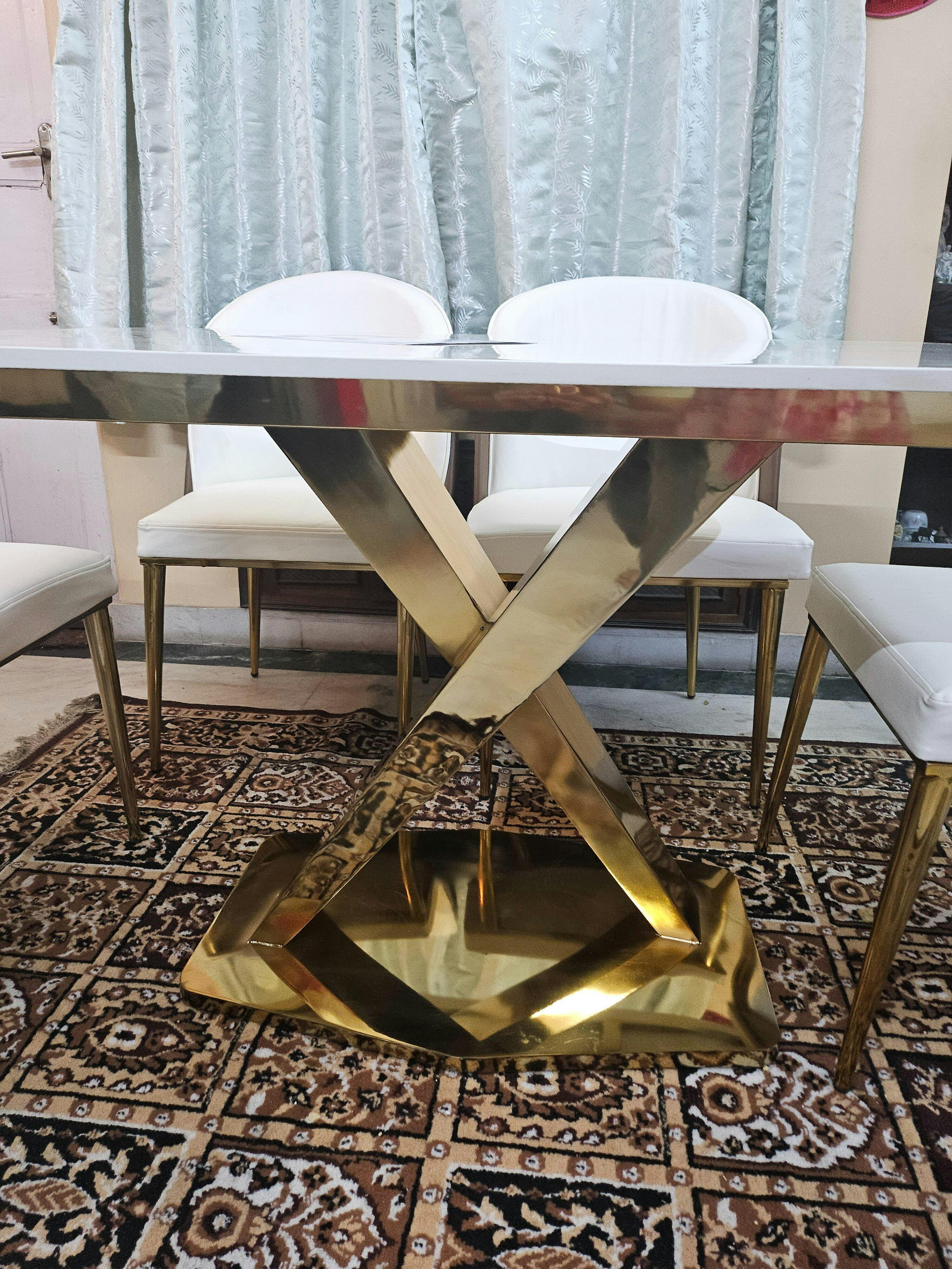 Dine in modern luxury with this exquisite White Marble Dining Table.