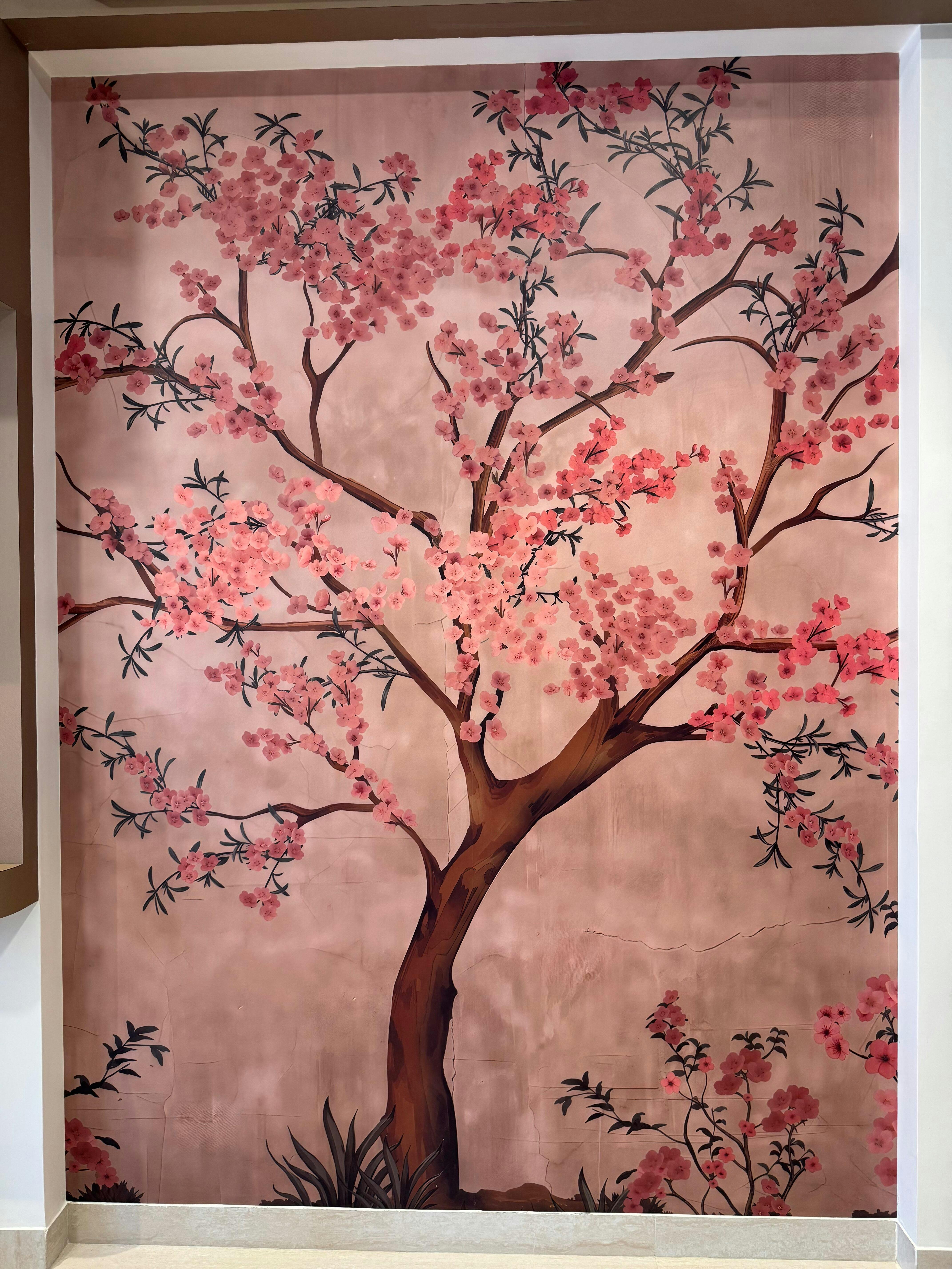 The wallpaper quality is outstanding—beautiful texture, vibrant colors, and a refined finish that gives the room an elegant, serene look. The cherry blossom design adds a touch of freshness and warmth to the space, making the interiors feel both modern and soothing.